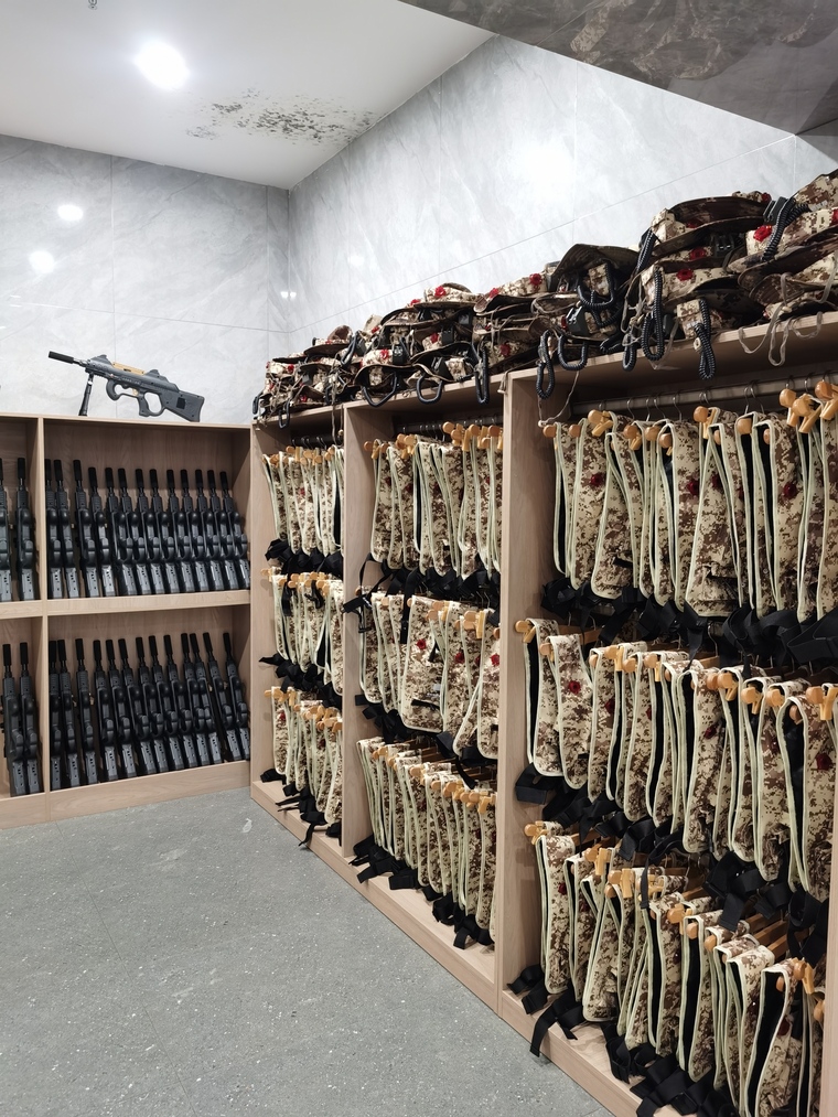 260套真人CS裝備整齊劃一的擺放在接待大廳的設(shè)備架上,氣勢宏大,是目前國內(nèi)規(guī)模最大,檔次最高的真人CS對抗項目了。
