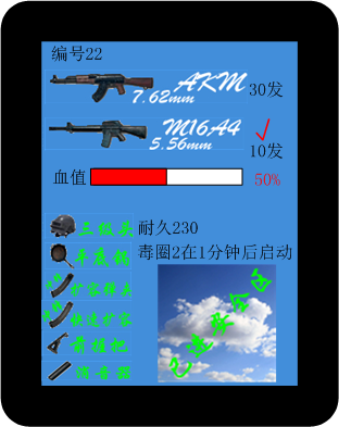 真人吃雞裝備也不能做成屏上虛擬的,這沒有真實感,做成屏上虛擬的還不如就玩手機了。同時這么多資源在屏上晃,注意力都在屏上了那還怎么玩槍戰(zhàn),一心不可二用。